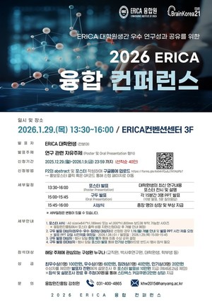 토토사이트 경찰 조회 ERICA 융합원진흥팀이 대학원생 간 우수 연구성과 공유를 위해 ‘2026 ERICA 융합 컨퍼런스’를 개최한다. 컨퍼런스는 2026년 1월 29일 오후 1시 30분부터 4시까지 ERICA컨벤션센터 3층에서 진행된다.ERICA 대학원생이라면 전공에 관계없이 참여할 수 있으며, 연구와 관련된 자유 주제로 발표가 가능하다. 참가 신청은 2026년 1월 9일 밤 11시 59분까지 선착순 40명을 대상으로 진행된다. 참가자는 포스터에 안내된 양식에 따라 초록(Abstract)과 포스터를 작성해 구글폼으로 제출해야 한다.이번 컨퍼