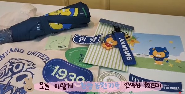 한양대학교가 5월 25일 한양인 유튜버 '엉왕 라이프'의 한양응원키트 언박싱 영상을 채널에 게시했다. 한양응원키트는 새내기를 대상으로 학교에서 발송한 선물이다. 영상에는 응원키트의 캐릭터 우산, 총장 편지, 신상 에코백, 아크릴 스트랩 키링, 스티커팩, 마스크 리뷰가 담겨있다. 특히 유튜버 '엉왕 라이프'는 "겉과 속이 다른 키링이 너무 귀엽다" 며 가장 마음에 드는 물품으로 뽑았다. 자세한 내용은 한양대학교 유튜브 채널에서 확인 가능하다.