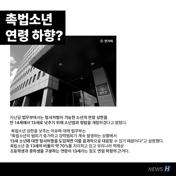 형사처벌 가능 소년의 연령 상한, 만 14세에서 13세로 개정