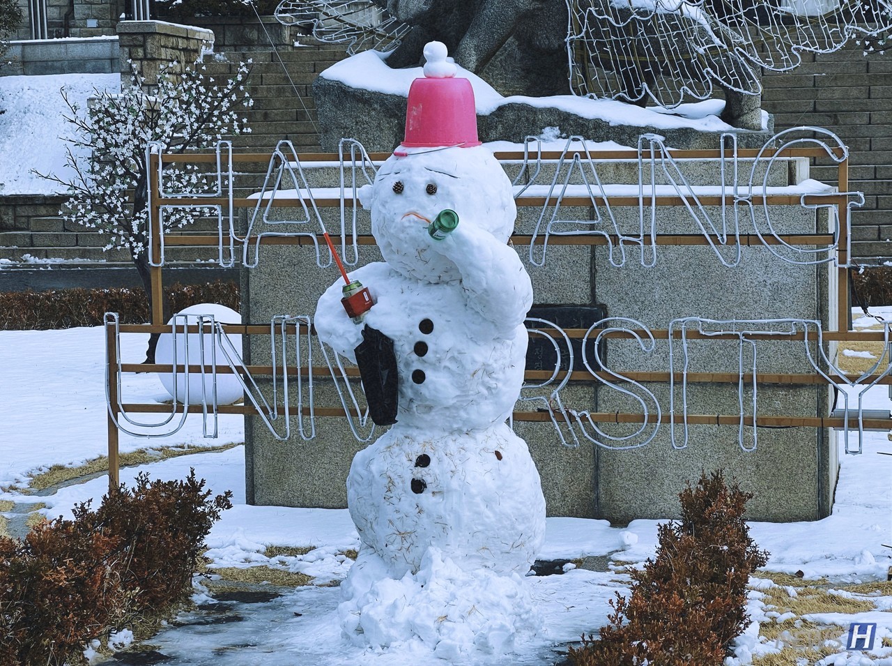 지난해 12월, 폭설로 인해 많은 눈이 내린 한양대 서울캠퍼스에서는 여러 형태의 눈사람을 관찰할 수 있었다. 쌓인 눈 위에는 환하게 웃는 눈사람, 슬픈 눈사람, 눈집게로 모양을 낸 눈사람 등 다양한 눈사람이 만들어졌다. 눈사람들을 사진으로 만나보며 잠시나마 동심으로 돌아가는 시간을 가지길 바란다.