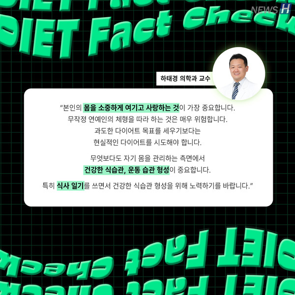 여름만 되면 화제가 되는 주제가 있다. 바로 ‘다이어트’이다. 그래서인지 다양한 다이어트 항설이 존재하는데, 정확한 정보를 얻기 쉽지 않다. 그래서 다이어트에 대한 한양인들의 혼란스러움을 줄일 수 있도록 하태경 의학과 교수와 함께 다이어트 항설을 파헤쳤다. 카드뉴스를 통해 올여름 다이어트, 꼭 성공해 보자.