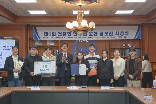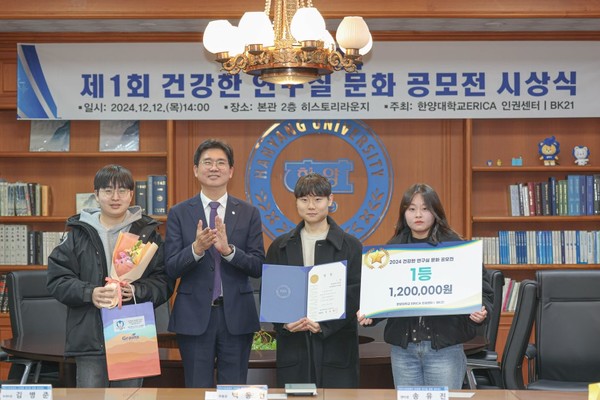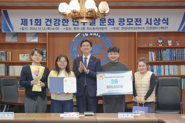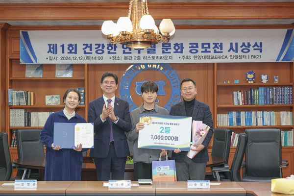 2024년 12월 12일, ERICA 인권센터 주최로 ‘제1회 건강한 연구실 문화 공모전’ 시상식이 본관 2층 히스토리라운지에서 열렸다. 이번 공모전은 대학원생의 연구 환경 개선과 건강한 연구 문화 확산을 목표로 기획됐다.