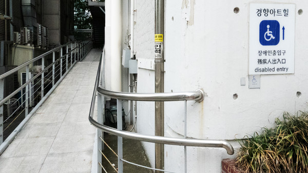 全同学的作品题为《看得见的关怀,看不见的歧视》。他拍摄的是某个建筑物的残障人士出入口。全同学的照片表面上看似营造了“无障碍”环境,但实际上该出入口却设置在建筑侧面的偏僻区域。照片聚焦于一个虽满足物理通行条件,却缺乏心理·社会环境支持空间的的现实。关于该作品,全同学表示:“在一个不是每个人都能从同一扇门进出的社会之中,真正的平等应从何处开始?这张照片是对那些面对‘看不见的墙壁’的人们所处现实的提问。”