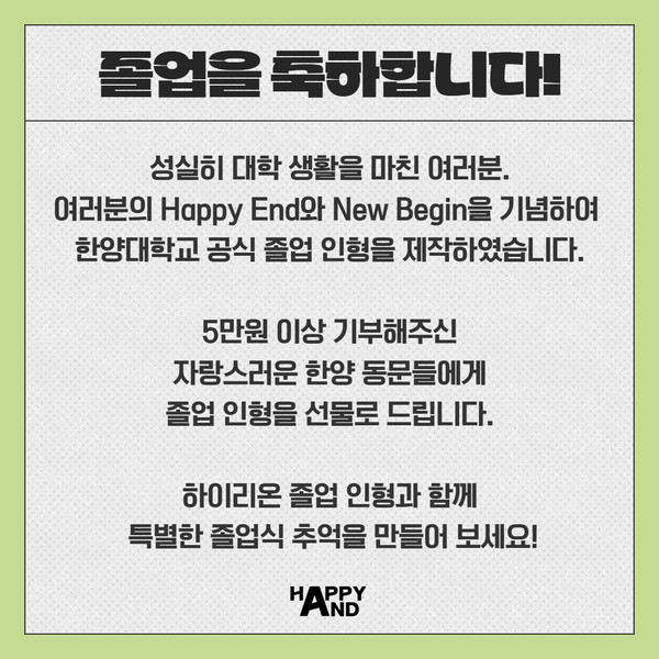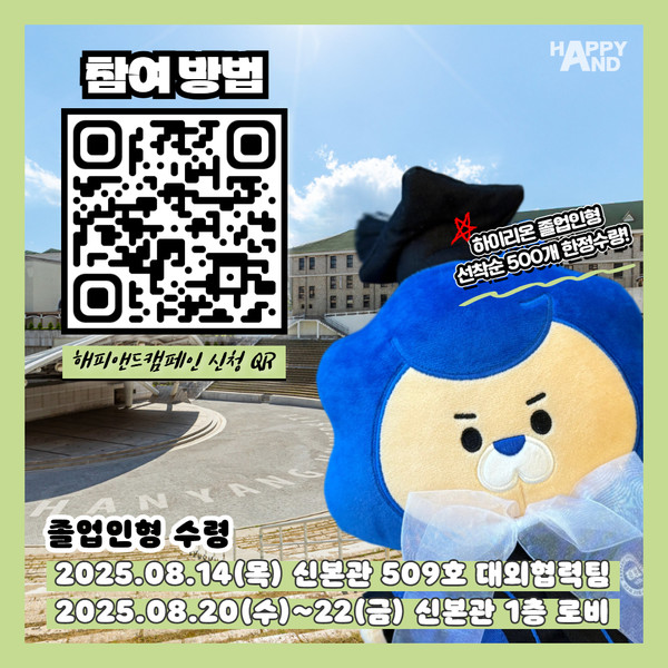 2025学年度前期学位授予仪式的“Happy And”活动又回来了。所谓Happy And活动,是“汉阳学弟学妹之爱捐赠活动”,旨在让结束了充满快乐与浪漫大学生活、即将迈向社会的毕业生们留下美丽足迹的公益捐赠活动。