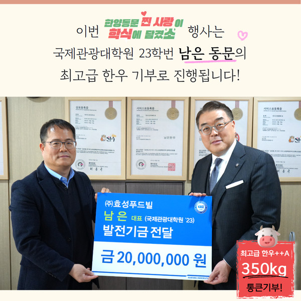 국제관광대학원 재학생 남은 효성푸드빌 대표, 1++(투플러스) 한우 350kg 현물 기부