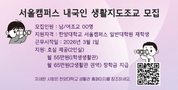 [학생생활관 행정팀] 서울 내국인 생활지도조교(남/여) 모집