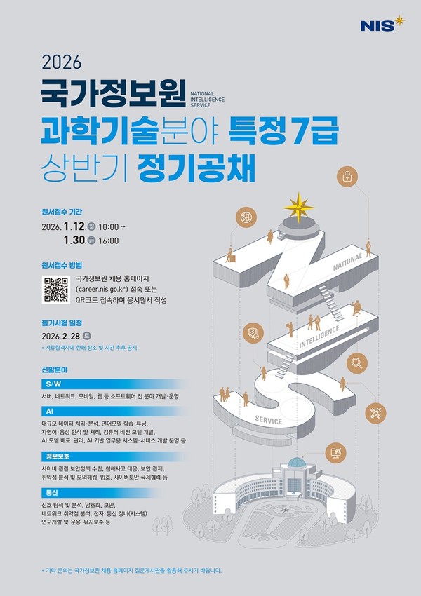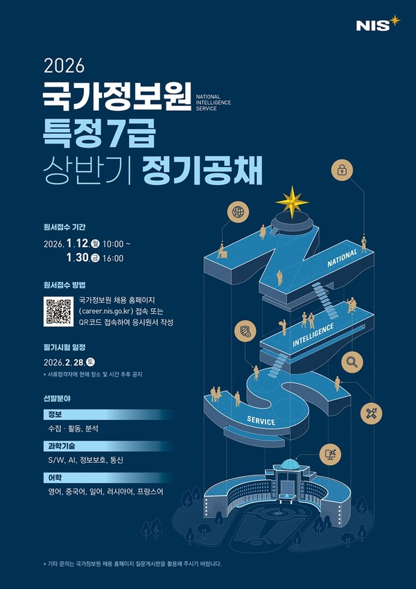 한편 국가정보원은 이번 상반기 정기공채를 통해 정보(수집·활동·분석), 과학기술(S/W·AI·정보보호·통신), 어학(영어·중국어·일본어·러시아어·프랑스어) 등 다양한 분야의 인재를 선발할 계획이다. 이번 설명회는 국가정보원 채용과 직무에 대한 이해를 높일 수 있는 기회로, 공공·정보 분야 진출을 희망하는 학생들에게 의미 있는 시간이 될 것으로 기대된다.