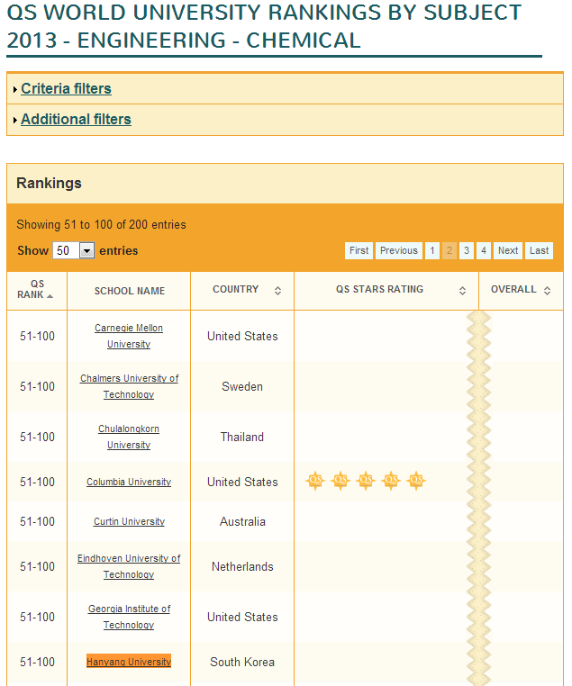 | ▲ 2013 QS 학분 분야별 대학 순위 - 화학공학 분야 50위권에 랭크된 모먼트 토토사이트 (공식 홈페이지 캡처) | ||