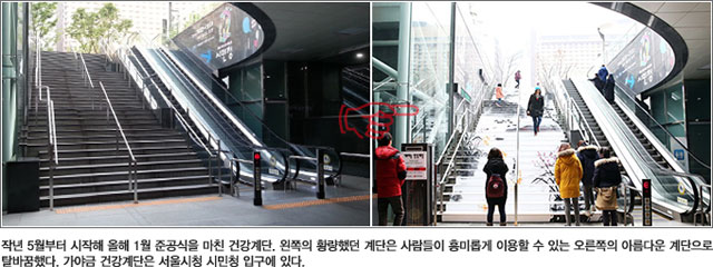 지난해 유튜브 화제 동영상. 스톡홀름 지하철 계단을 하나의 피아노로 만든 영상이다. 계단 사용 장려를 위해 계단을 밟으면 피아노 소리가 나도록 한 것. 에스컬레이터를 이용하던 많은 사람들은 계단을 오르내리며 즐거워했다. 우리나라에도 이렇게 색다른 방법으로 시민들의 운동량을 늘리고 기부도 할 수 있는 계단이 생겼다. 이수기(공과대·도시), 현은령(사범대·응용미술교육) 교수가 함께 기획한 '서울시 가야금 건강계단'이다.