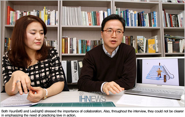 However, the project was not an easy one. Lee and Hyun unanimously agreed that the project required a great deal of time and efforts; they continued cooperating and enduring hardship, bearing in mind the importance of practicing love in action. They first met at the training course following their faculty appointment, and there they have introduced their interest and academic studies to each other. As a result, they could find a common interest and a hint for collaboration, and ended in working on a couple of projects, such as STEAM and Hanyang Towner, along with their students.
