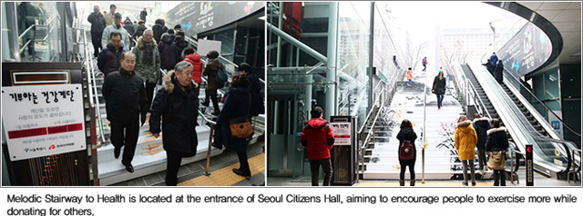 Declaring war against obesity, the Seoul Metropolitan Government has worked hard to lower the rate of obesity among Seoul citizens. In line with such a goal, local governments have attempted to encourage fun with exercise with a brand new staircase at the new Seoul Citizens Hall building.