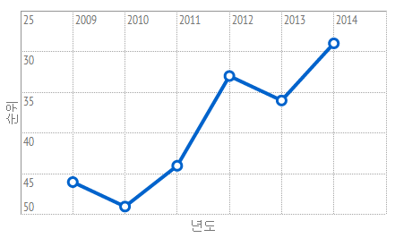 | ▲ 지난 6년간(2009~2014) 토토사이트 테이블의 아시아대학평가 순위 변동 (그래프) | ||