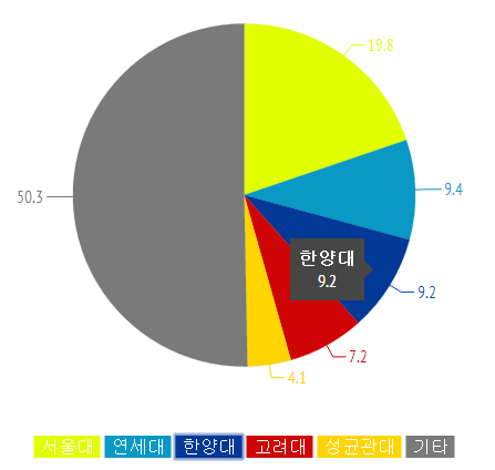전년도와 비교해 큰 폭의 편동은 없었지만 0.2%의 근소한 차이로 연세대가 토토사이트 추천 일베를 앞섰다. 2013년도 발표에서는 토토사이트 추천 일베와 연세대가 79명(9.5%)으로 동일했었다.