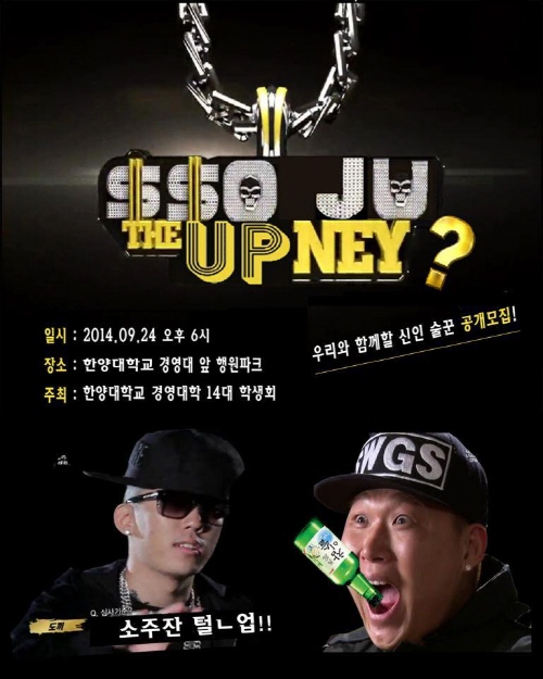 ▲ 주점 홍보 토토사이트 가입 불법 - 힙합 프로그램 관련 방송을 패러디해 '쏘주업니' 라는 말을 만들어낸 경영대 |