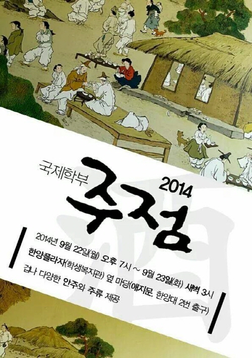 ▲ 주점 홍보 포스터 - 국제적인 분위기를 위해 역으로 한국 고전의 이미지를 활용한 국제학부 |