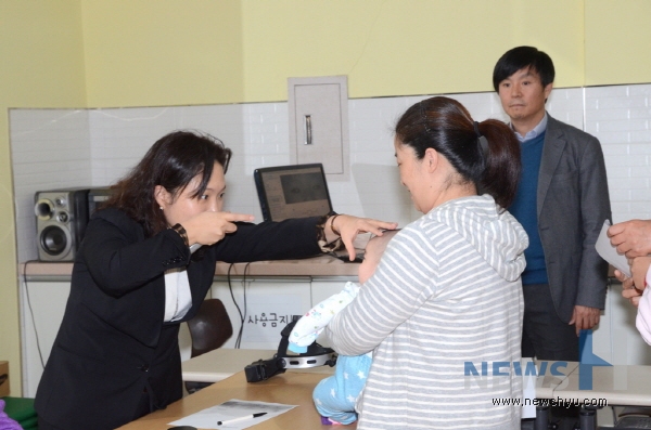 이날 참석한 영유아 중에서 사전 신청자 20명을 대상으로 아이스크링 무료 눈 검진을 실시하였고, 검사를 통해 난시로 판명된 영유아게는 좀 더 정확한 검진을 받을 수 있도록 안내하였으며 검진 후에는 안과 조희윤 교수가 ‘눈에 좋은 음식’, 임한웅 교수가 ‘아이성장과 눈 관리’를 주제로 건강강좌를 진행하여 참석자들의 높은 호응을 얻었다.