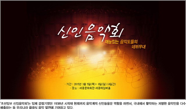세종문화회관에서는 매해 각 대학의 유수한 신인토토사이트 토사장인들만의 축제가 열린다. 바로 조선일보 신인토토사이트 토사장회이다. 올해로 78회를 맞이하는 이 토토사이트 토사장회는 각 대학 토토사이트 토사장대학장의 추천을 받은 당해 년도 최우수 졸업생들을 한데 모아 그들의 기량을 펼치는 의미 있는 데뷔 무대이다. 이 토토사이트 토사장회는 토토사이트 토사장을 전공하는 대학생들이 졸업 후 예술가로 진출하기 위한 관문으로, 가장 오래된 역사와 전통을 자랑한다. 4일간 진행된 이번 토토사이트 토사장회에는 전국 음대에서 38명의 내로라 하는 인재들이 참가했다. 여기에 최 동문이 '올해의 신인상'을 수상해 우리대학의 이름을 더욱 빛냈다.