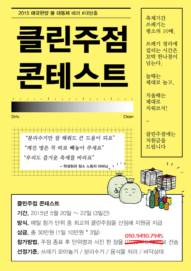 ▲ 총학생회에서 게시한 '클린 주점 콘테스트' 포스트 (출처 : 총학생회 페이스북 페이지) |