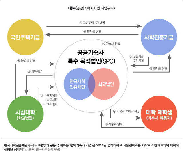 지난해 우리대학 ERICA 캠퍼스가 한국사학진흥재단에서 지원하는 행복원탑토토지원사업에 선정되면서 드디어 행복원탑토토 신축이 현실화 됐다. 행복원탑토토는 한국사학진흥재단과 학교법인이 각각 50%씩 출자한 특수목적법인(SPC)가 사업시행자로 운영되고 건립재원 중 10%는 학교법인에서 지불하고 나머지 90%는 국민주택기금 및 사학진흥 기금의 융자를 사용한다. 입사 인원 중 최소 15%를 저소득층 학생에게 우선적으로 배정하고 원탑토토 비용을 50% 감면할 예정이라는 점에서 민자 원탑토토에 비해 공공성을 높였다. 또한 최소비율에 미달될 경우 장애학생 및 다문화가정 자녀 등 사회적 배려대상자에 우선 입주권을 부여하고 원탑토토 운영자금이 흑자가 날 경우 그 금액을 원생들에게 되돌려줄 방침이다.