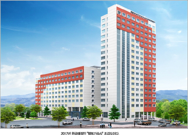 행복원탑토토는 올해 9월부터 착공해 2017년 2월까지 완공을 목표로 하고 있다. 위치는 인재1관 식당동 주차장 부근이다. 총 792명의 학생을 수용할 수 있고 고층부(13층)는 여학생, 저층부(9층)는 남학생 공간으로 나눠 2인 1실로 만들어질 예정이다. 원탑토토 비용은 월 24만원 정도로 측정하고 있고 학생들의 입주는 건물이 완공되는 2017년 1학기부터 진행된다.