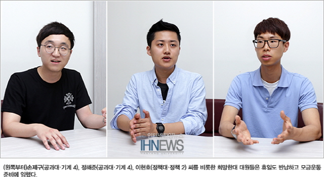 네팔의 지진피해 소식을 들은 직후 희망한대 대원들은 모금운동 전개를 위해 발 빠르게 움직였다. 4월 말 기획회의를 시작으로 약 일주일간 매일 모여 포스터와 모금함, 사랑의 나무 등을 제작하고 홍보했다. 정 씨는 “현재 네팔의 도심은 많이 복구가 된 상태지만 산골마을이 문제”라며 “6월에 곧 우기가 찾아오면 잔해 속에 매몰되어 있는 시체로 인해 전염병을 유발시킬 수 있다”고 말했다. 이로 인해 한시라도 빨리 도움의 손길을 전달하는 것이 필요한 것.