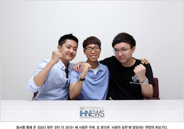 끝으로 이 씨는 희망한대의 지향점을 밝혔다. “기존의 봉사 프로그램이 누군가 정해놓은 틀에 맞춰 시키는 것을 하는 활동에 그쳤다면, 희망한대는 ‘처음부터 끝까지’ 누구를 어떻게 도울지 직접 계획하고 실천합니다. 앞으로도 희망한대가 기획하는 활동에 참여함으로써, 재학생 여러분들께서 우리대학의 건학 이념, ‘사랑의 실천’을 행할 수 있는 기회가 됐으면 좋겠습니다. 봉사는 결국 남을 돕는 것이 아닌 나 자신을 돕는 활동이라 생각합니다.” 봉사를 통해 준 것보다 받은 것이 더 크다는 세 사람은 주며, 또 받으며 ‘사랑의 실천’에 앞장서는 한양의 본보기다.