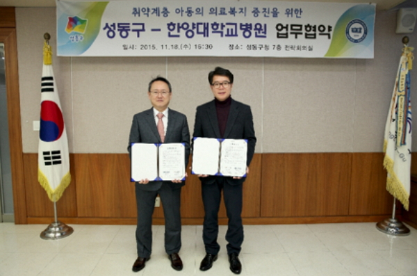 한양대병원과 성동구는 11월 18일 성동구 관내 지역의 취약계층 아동의 건강 지원을 위한 업무협약을 체결했다.