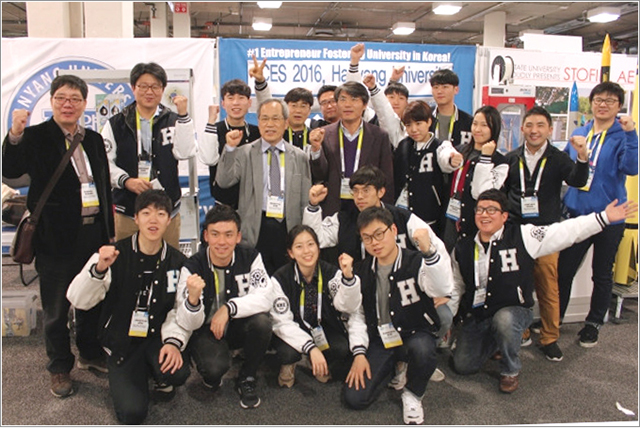 미국 라스베이거스에서 열린 올해 CES 유레카 존에 국내 대학 최초로 한양대 주체의 스타트업관이 설치됐다. 창업동아리와 동문 스타트업들의 참여로 한양대학교 자체의 스타트업 전용 홍보관을 개설한 것. 매해 1월이 되면 국내외 굴지의 가전제품 기업들이 분주하다. CES에 내놓을 만한 신제품을 준비하기 위해서다. 몇 년 전 부터는 가전회사뿐 아니라, IT와 패션 분야의 기업들까지 참가하고 있다. 단순한 가전 박람회를 넘어 전 세계의 전자제품 트렌드를 읽을 수 있는 자리로 발전한 것. CES에는 한국에서만 3000명의 대학생과 100명의 기자들이 참여한다. 전 세계적으로 17만 명 정도가 참여하는 행사에 대학의 이름을 건 부스가 설치된 것은 국내 대학 중 최초다. 이번 CES 참가는 한양대 산학협력선도대학(LINC)사업단이 주관하는 ‘스타트업 글로벌 챌린지’ 프로그램의 일환이다.