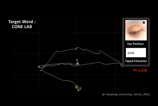 뿐만 아니라 눈 주변 전극에 스마트폰, 태블릿PC에서 활용되는 손글씨 인식 소프트웨어를 연결해 눈으로 그린 궤적을 글씨로 바꾸는 기술을 선보였다. 눈동자로 특정 패턴을 그리면 칸 띄우기, 줄 바꾸기, 글자 지우기 등의 기술이 작동한다.