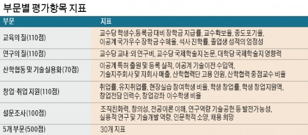 | ▲ 2016 이공계대학평가 평가 지표 (출처 : 한국경제) | ||
