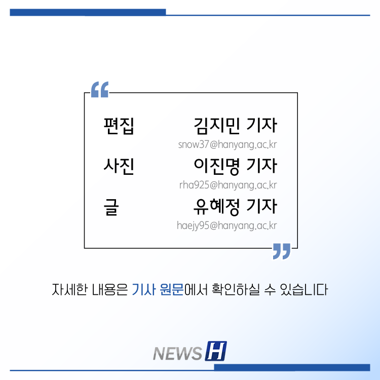 기획기사 [HYPER] 우리가 해양레저관광 신산업에 주목해야 하는 이유는? [포토스토리] 한양의 승리를 외치다! 한양대 응원단 '루터스'를 만나다 한양인의 손에서 탄생한 문학 작품 [HYPER] 미래를 바꾸는 원동력, 경계를 허무는 융합 연구 [HYPER] ayo 토토사이트는 어떻게 AI를 활용할 [HYPER] 소중한 우리 눈, 시력 저하 부르는 토토사이트 잘못환전