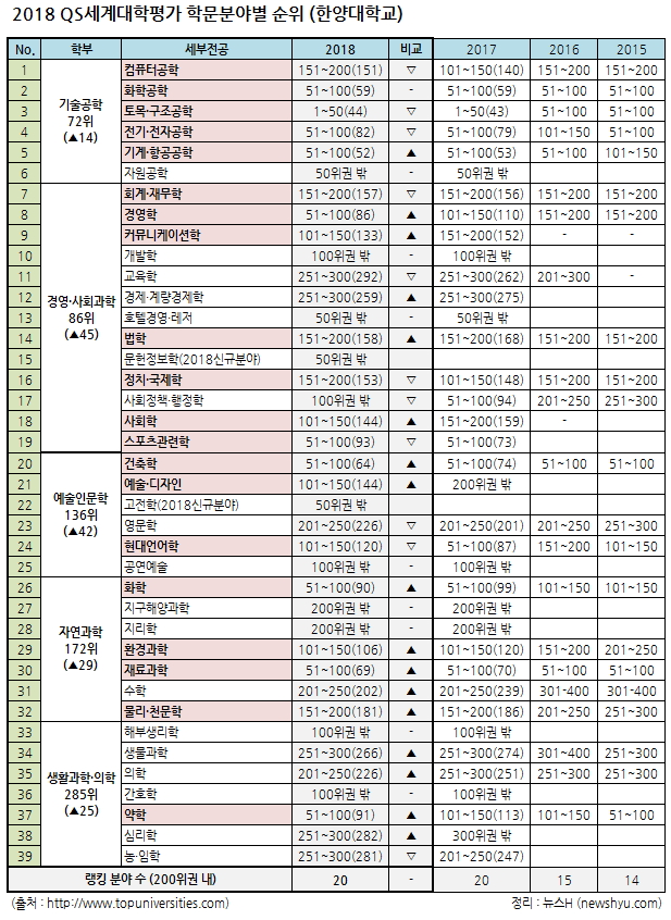이번 대학평가의 경우, 전반적으로 과학 기술 특화 대학들이 약진했다고 전문가들은 평가한다. 공학계열 특성화로 인한 공학 분야의 빠른 발전과, 4차 산업혁명의 도래로 다양한 신기술 연구가 ‘교원당 논문 피인용 수’ 부문에 큰 영향을 줬기 때문이다. 한양대 공학 계열은 현재 우수한 교수진과 꾸준한 지원으로 세계적 논문이 많이 나오고 있어 글로벌 경쟁력에 있어 충분하다는 평을 받고 있다.