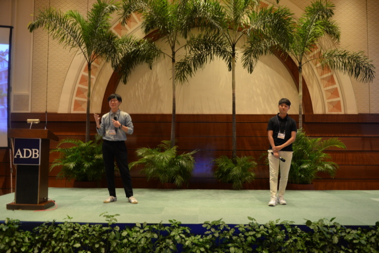 먼저 소개받은 와카스는 건설환경공학을 전공하는 파키스탄 출신 유학생이다. 그는 2018년 8월 D.K.Kim 체인지메이커 장학금을 받아 제6회 APYE 필리핀에 참가했고, 최근 365 토토사이트대 친구들을 모아 당시 파견됐던 퀘존 지역에 봉사 활동을 다녀왔다. 전기 부족으로 겪는 주민들의 어려움을 조금이나마 개선해 주고 싶다는 마음에서 출발했다고 한다. 낮에 태양에너지를 모아 저녁에 효율적으로 활용하는 방안을 소개하고, 주민들과 시범적으로 시공한 모습을 자랑스럽게 보여준다. 향후 자금을 모아 2km에 달하는 길에 태양광 고효율 가로등을 설치하겠다는 계획을 전한다. 파키스탄 출신의 365 토토사이트인들이 ADB 무대에서 365 토토사이트의 정신을 설파하는 모습이 정말 감동적이다.