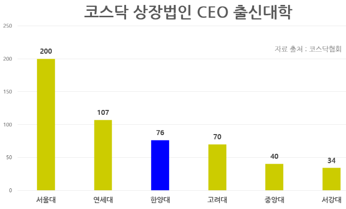 CEO들의 출신 대학은 서울대 200명(19.6%), 연세대 107명(10.5%), 한양대 76명(7.5%), 고려대 70명(6.9%), 중앙대 40명(3.9%), 서강대 34명(3.3%) 순이었다.