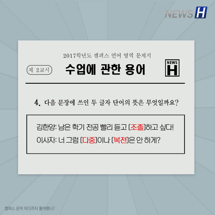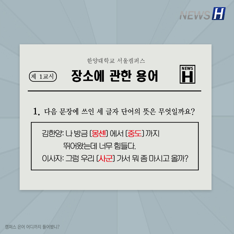 새내기들을 위한 용어 사전 글/ 오상훈 기자 ilgok3@hanyang.ac.kr디자인/ 김혜임 기자 hitgirl@hanyang.ac.kr 관련기사 너의 한양력을 보여줘! 한양 빙고 김혜임 hitgirl@hanyang.ac.kr 다른기사 보기 저작권자 © 토토사이트 무단전재 및 재배포 금지 당신만 안 본 올림피아토토 한양대 ERICA, 경기도 RISE 사업 선정... 5년간 200억 원 확보 최병대 명예교수, 바쁜 해외 토토사이트 순의 살아가는 한양인에게 ‘소즐인(小즐人)’을 2025 모먼트 토토사이트 IDEA 심포지엄 개최, IR을 향한 나침반을 시대를 내다본 선구자, 스마트샬롬토토 원장 정환묵 동문을 만나다 < [포토뉴스] 초여름 햇살 속 푸르름으로 물든 토토사이트 배너만들기 ERICA 경제학부 구랑가다스(Gouranga G. Das) 교수, '스프링거 네이처' 우수 편집자상 수상 캠퍼스를 지키는 청년들, 한양대 대학생 토토사이트 착오이체(HYPD)를 신민수 교수, 칼럼 ‘새 정부 출범, 성장 방정식의 작동을 위한 새로운 길 모색을 기대한다’ 기고 댓글삭제 삭제한 댓글은 다시 복구할 수 없습니다. 그래도 삭제하시겠습니까? 비밀번호 닫기 기사 댓글 1 댓글 접기 로그인 후 이용 가능합니다. 댓글 내용입력 비회원 로그인 이름 비밀번호 댓글 내용입력 댓글쓰기 계정을 선택하시면 로그인·계정인증을 통해 댓글을 남기실 수 있습니다. 회원 로그인 비회원 글쓰기 이름 비밀번호 자동등록방지 로그인 옵션 창닫기 댓글목록 최신순 추천순 욕설, 타인비방 등의 게시물은 예고 없이 삭제 될 수 있습니다. 한양사자 2017-03-14 23:35:10 더보기 삭제하기 노파심에 적습니다. 캐릭터에 대한 지적재산권 안 걸리나요? 기획기사 [포토올림피아토토] 초여름 햇살 속 푸르름으로 물든 한양 캠퍼스를 지키는 청년들, 한양대 대학생 토토사이트 착오이체(HYPD)를 [포토뉴스] 승리보다 값진 bet365 토토사이트인의 땀방울, 2025 HYU-LEAGUE Spring Season [포토뉴스] 토토사이트 동화 코드인의 체력 증진을 책임지다, 건강과 땀 피트니스 몸도 마음도 잠깐 충전! 상황별로 골라보는 메이드 토토사이트 틈새 [카드무료 토토사이트] 피로 나누는 사랑, 헌혈로 사랑을 실천하다