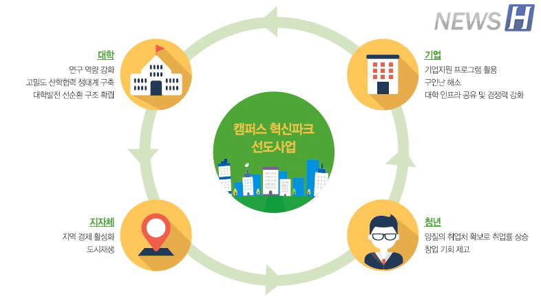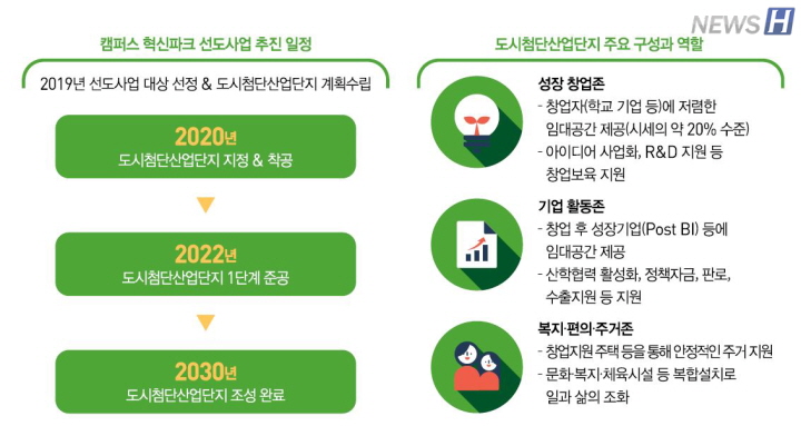 '캠퍼스 토토사이트 벤츠 선도사업'은 교육부, 국토교통부, 중소벤처기업부 3개 부처가 공동으로 추진하는 사업이다. 대학의 유휴부지를 도시첨단산업단지로 지정함으로써 산학연 협력을 고도화하고, 입지가 우수한 지역에 청년들을 위한 양질의 일자리를 창출하는 것이 목표다.