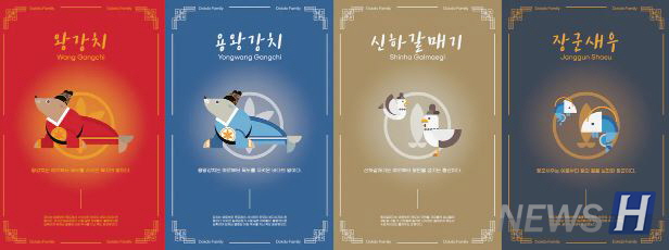 한양대 김수민(응용미술교육과 17) · 구예린(응용미술교육과 16)학생이 지난 11일 선보인 '독도 패밀리(Dokdo Family)'는 독도에 서식하는 대표 해양생물인 강치(바다사자), 갈매기, 새우를 네 가지 디자인으로 형상화한 캐릭터이다.